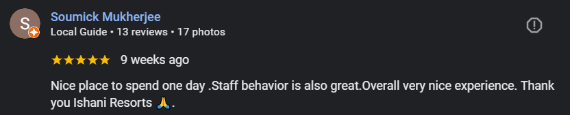 Guests choose Ishani Resort for its peaceful ambiance, clean and cozy rooms, and warm hospitality. Whether it’s a relaxing weekend or a special occasion, they love the beautiful surroundings, quick booking process, and homely comfort that keeps them coming back.